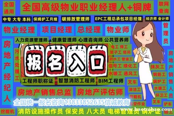 辽阳报名企业管理师物业经理项目经理人力师保育员园长电工叉车信号工烹调师心理师报名